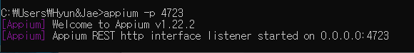 위 명령어는 4723 이라는 포트로 appium 을 시작해라 라는 뜻입니다.