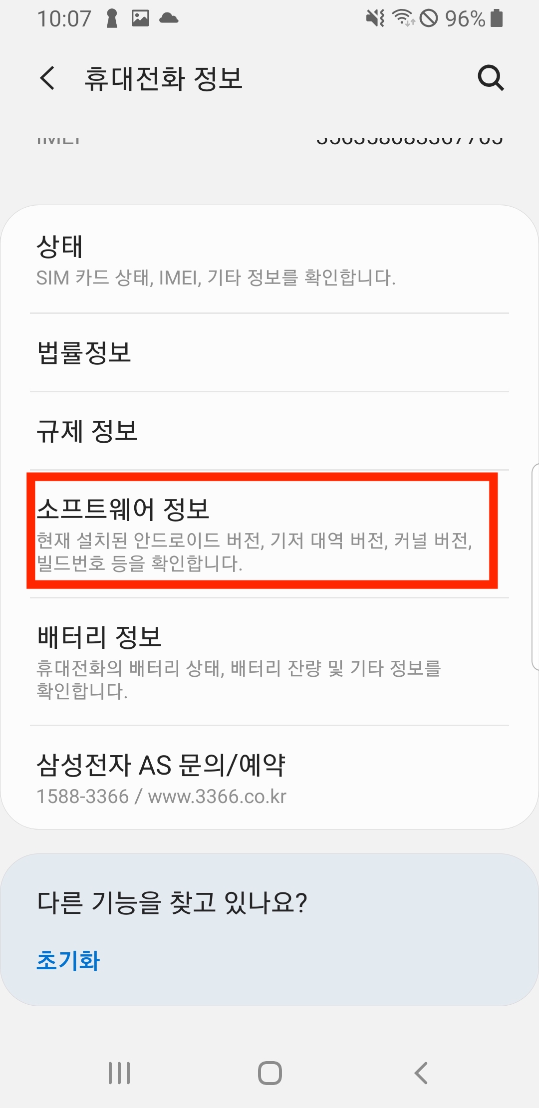 설정으로 들어가서 휴대전화 정보 > 소프트웨어 정보를 선택합니다.