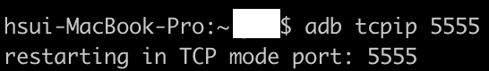 adb tcpip를 이용해 port를 등록합니다. port는 보통 5000번대를 사용하는데 저는 5555를 사용하겠습니다.