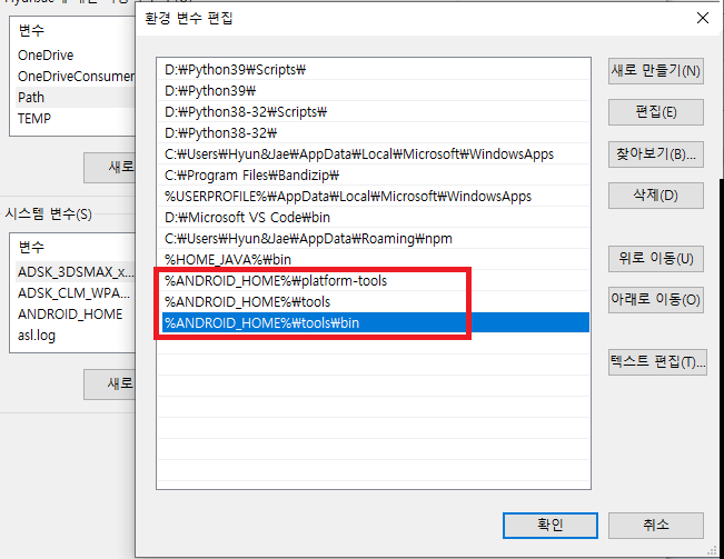 변수 이름 : ANDROID_HOME