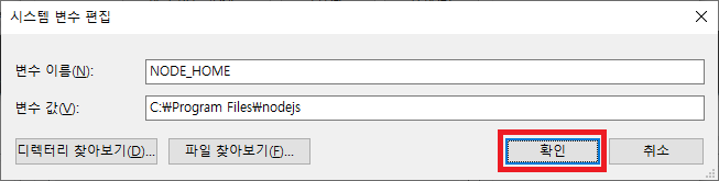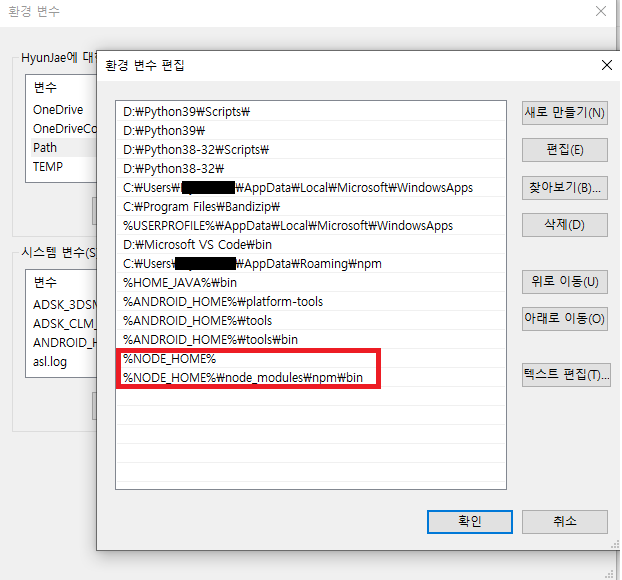 %NODE_HOME%\node_modules\npm\bin 를 입력합니다.