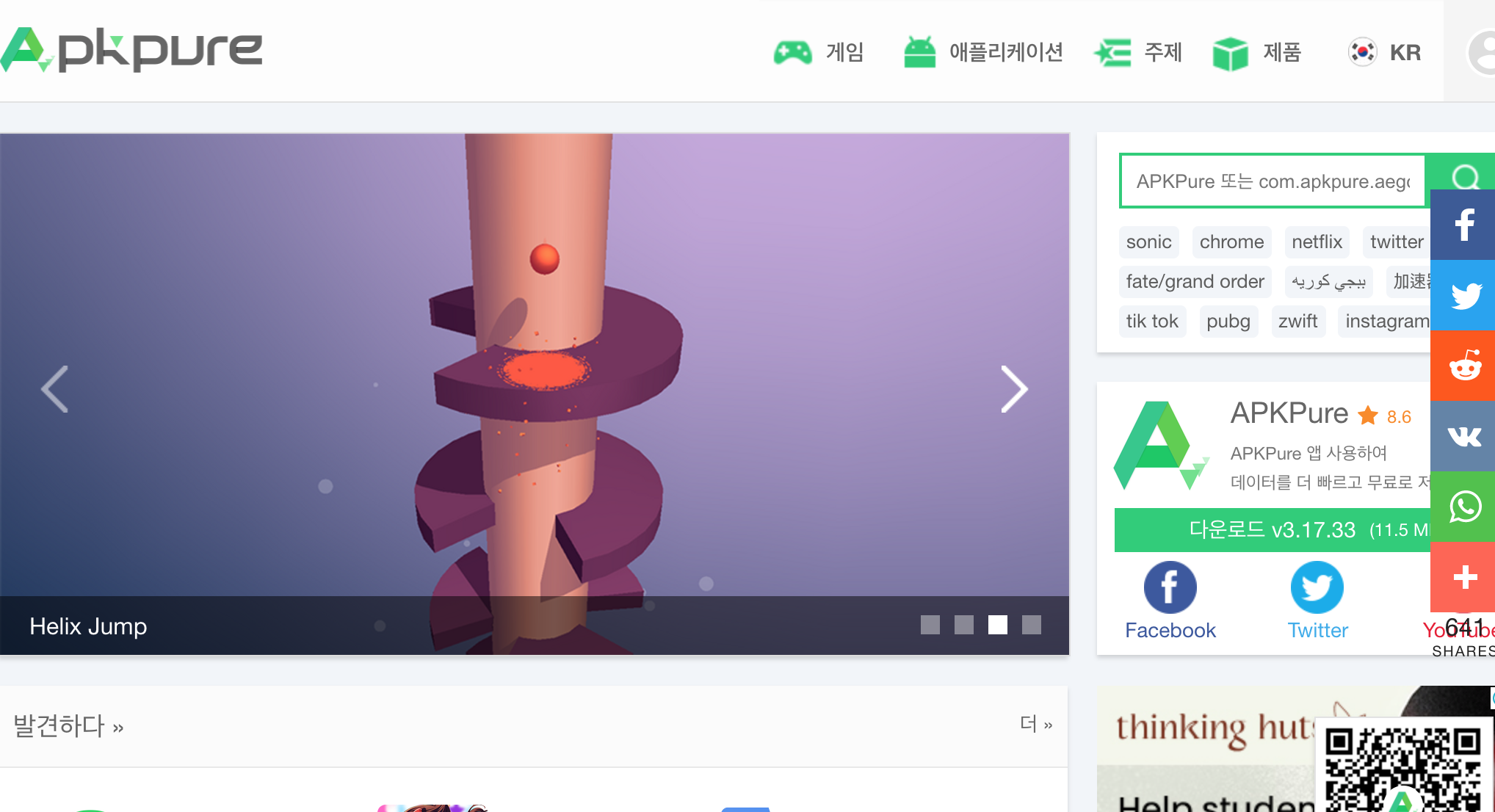 테스트 자동화 연습을 하기 위해서 앱이 필요하다 싶으면 apkpure라는 사이트에서 APK 파일을 다운 받아서 사용하실 수 있습니다.